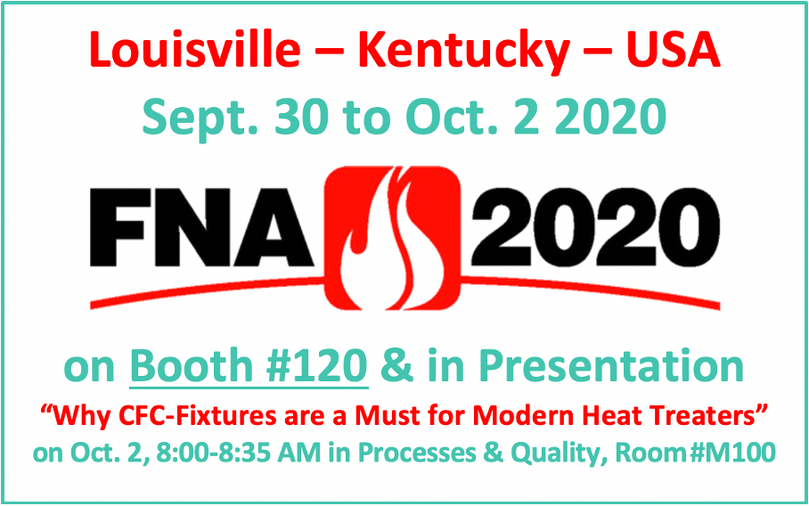The FNA 2020 Technical Conference Committee under the lead of Mr. Tom Morrison, the CEO of MTI Management and the FNA Producer, is excited to announce, that the presentation “Why CFC-Fixtures are a Must for Modern Heat Treaters“ submitted for consideration, has been accepted as one of the technical sessions to be presented at Furnaces North American 2020 in Louisville, Kentucky this October.